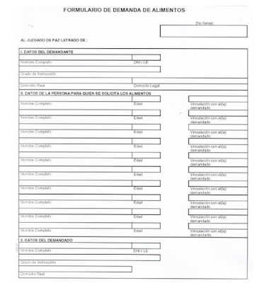 Esta es la primera hoja del formato de una demanda por alimentos: