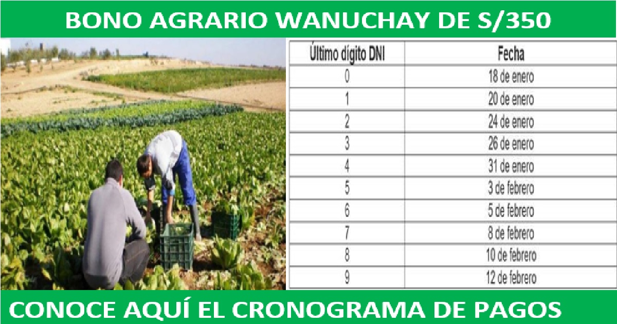 Bono Agrario Wanuchay de S/350: Conoce aquí el cronograma de pagos